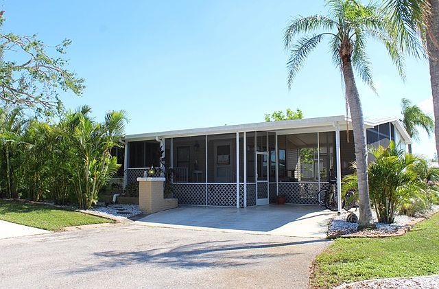 Listed by the Official Sales Team of Jamaica Bay Village. Are you looking for a spacious home, a flexible floorplan, several outside sitting area options in a great location? Wonderful home offers open floor plan, vaulted ceilings and a great location backing to a canal. Large island kitchen with open to formal dining area which could be a cozy family room. Wood laminate flooring and more. Master suite has walk-in closets with mirrored doors, bath has garden tub, newer vanity with dual sinks and Corian counter top. Exterior features raised lanai with acrylic windows, huge screened in carport with quaint front covered patio and two outdoor paver patios. Mostly furnished. Jamaica Bay is a very active, 55+ community with many clubs, sports and activities for the residents. Amenities include two swimming pools, three clubhouses, hot tub, sauna, state-of-the-art fitness center, library, billiard room, shuffle board, tennis courts and pickle ball courts. Site fee includes: site lease, water/sewer, trash/recycle, lawn mowing, basic cable, 24 hour attended gatehouse and access to all community amenities.