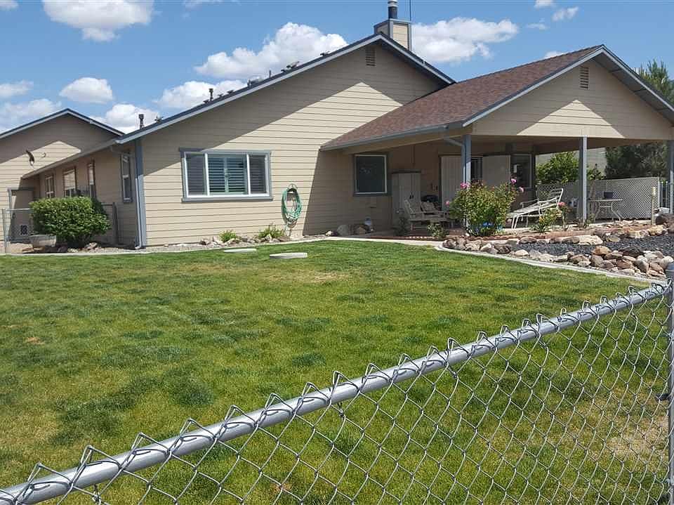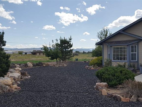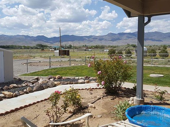 $50,000.00 RV Garage with a beautiful Home with 3-bedrooms, 2.5 bathrooms, plus an office and located on 4.93 acres. There is a circular driveway leading to the 3-car attached garages. The Gourmet kitchen has a 2- part dishwasher and you can run each part separately, huge pantry' plus abundant custom Oak wood cabinets, vaulted ceilings in the living room, dining room and family room with a build gas log fireplace off of the family room & breakfast nook is an amazing huge covered patio with panoramic views of the surrounding area.There is a over sized laundry room with a wash up sink. Extras include a 2,016 sq.' Shop with 3 huge RV Garages, 2 with 16' high roll up doors and 17' high ceilings in all the 3rd door is the shop with a roll up door, a spray paint booth/workshop with a mezzanine/ loft area above the workshop area. There is a separate electrical panel patio the the RV Garages with 50 amp services. There is also a second detached building could be used as a studio or could be accommodate 3 to 4 cars. From the covered patio you can walk to the jetted spa, The backyard is fenced with grass and is perfect for entertaining or children or pets. The swimming pool has been filled in with dirt and capped with approximately 2"' of concrete and if one desires it can become a swimming pool again. This corner lot is one lot from BLM. open space for hiking or ATV's'. This property has it all! This home is in move in condition.