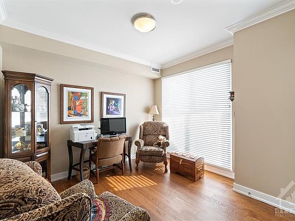 Stunning 2 bedrm, 2 full bath condo in Petrie's Landing. Guest bedrm features its own balcony & cheater access to the full bathrm . Hardwd floors run throughout the open concept living/dining rms. Large windows providd breathtaking views. Gorgeous kitchen with 2-toned cabinetry, quartz counters, S/S appliances, & breakfast bar. Master bedrm with showstopper custom closet organizer & access to the lux 5 pce ensuite. Main balcony accessed from living and bedrooms with Southwest exposure offers a magnificent view of both the Ottawa River & picturesque sunsets. Crown moulding, classic paint tones & custom window coverings are just a few of the extra touches that went into creating the beauty of this space. Rooftop terrace with swimming pool & hot tub. A gym & spectacular lounge/ party rm are also located on the top floor. Underground parking space & storage locker are also included. Petrie island activities, highway access, Transit, shopping and great amenities are all nearby as well.