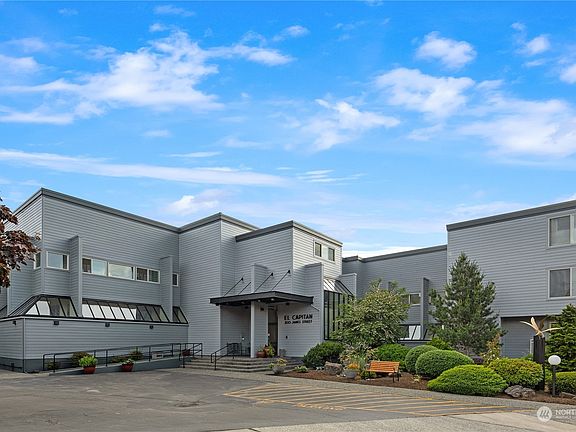 Contemporary Edmonds Views // Welcome to your light-filled contemporary oasis at one of Edmonds prime bowl locations - El Capitan. Step into this entirely updated unit where no surface or system has been left untouched through a thoughtful high-end remodel. This 3-bedroom unit offers a spacious living/dining area with a wet bar and wood-burning fireplace, a top-of-the-line kitchen with a breakfast bar. Enjoy west-facing vista views of Puget Sound and the Olympics from the balcony off the living room - the perfect spot to unwind and enjoy spectacular sunsets. 2 assigned parking spaces plus storage in the garage. The secured building offers elevator access, an exercise room, sauna, and a community room. Experience the best of Edmonds living!