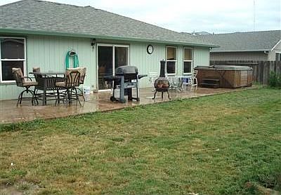Split floor plan is open with a large kitchen and dining room. Living room and bedrooms have laminate floors, and tile runs through the hall, kitchen & dining area. Central vacuum, stamped concrete patio and nice front porch areas are some of the great extras! A three bedroom, two bath home that feels much larger than 1450 square feet.