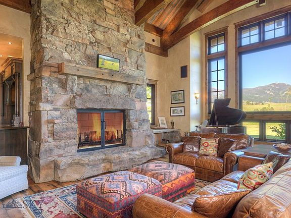 Stunning custom built home situated just minutes from downtown Bozeman and the East Gallatin River. This property offers seclusion and privacy, amazing views and a fabulous outdoor living space with a fireplace. The stone and timber accents blend beautifully with the surrounding nature hosting abundant wildlife. This 3 bedroom, 4 bath home features natural and reclaimed finishes providing an elegant, rustic atmosphere. The open floor plan and gourmet kitchen are perfect for entertaining. This property also features an attached, private 1 bedroom, 1 bath, full kitchen guest apartment with balcony above the garage. Drive your golf cart to nearby private country club for golfing, tennis, pool and restaurant.