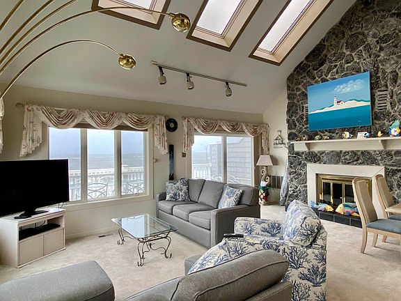 OPEN HOUSE FOR 10//7/23 IS CANCELLED. THE PROPERTY IS NOW UNDER CONTRACT. You will absolutely be dazzled by the ocean views this corner unit at 2nd and JFK offers! Situated on the top floor, an ocean view is offered from all living areas and every bedroom in the unit, and truly it must be seen to be fully appreciated. The impressive living room with vaulted cathedral ceilings and walls of windows overlooking the water is open and airy and features a gorgeous fireplace with floor to ceiling stone. The wide sliding doors from the living room lead out to a massive deck - and the views are absolutely mind blowing. There is plenty of seating for all your guests here to enjoy the best of life at the beach! The beautifully updated kitchen features beautiful cabinetry in a warm but light wood tone, granite counter tops, stainless steel appliances and a snack bar, and the dining area is close by for easy entertaining. On this level there are also two bedrooms, each offering a water view and ensuite baths. The loft area is magnificent offering a different but equally impressive vista with a sitting area, spacious bedroom space and private bath with shower. There is also a large cedar storage closet on this level to lock away all of your personal belongings should you choose to rent. Take the interior steps down to the foyer area which leads to the 2 car garage with private storage for this unit - so convenient to have all your beach chairs and items and bikes on the ground level. Let's talk about the rental history - this unit enjoys a solid book of repeat clientele and rents for as much as $4,100/weekly with all summer weeks booking easily. There is room to push the rental rate higher and rent additional weeks and popular festival weekends. The condo will be sold fully furnished less some personal items - but most of what is in the unit will stay such as small appliances, dishes, flatware, pots and pans, linens, etc. Essentially, the unit will be sold turnkey so that a buyer could move in and enjoy the property immediately. Do not miss your chance to own a property with views well beyond 180 degrees in one of the most desirable spots on the entire 5-mile island! This unit at Horizon Condominiums will not disappoint and we don't expect it to last long on the market. ** Please note that the sale of this condo is subject to the Seller closing on a suitable replacement property, which has already been identified. ** Call today for your showing! NOTE: Weather limitations have prevented full professional photography which will be completed as soon as possible. Please check back for photo updates! Please also check back for updates on status of open house scheduled for next Saturday, 10/7/23.