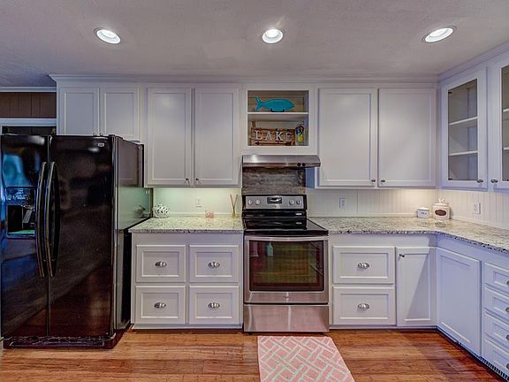 Nestled amongst the trees, lakeside...this home is hiding in plan site. If your looking for peace and quiet with amazing lake views, look no further. Large open floor plan that flows perfectly from kitchen to dining to living room. Beautiful kitchen with custom cabinets, granite counters, island bar with stainless top. All appliances to stay in the chef inspired kitchen. Huge master suite with soaking tub and stand alone shower. Screened porches on two sides of the house. Large covered shed gives plenty of room to park daily drivers, boats or ATV's. Call your realtor today, this house should certainly be on your list, of houses to see.