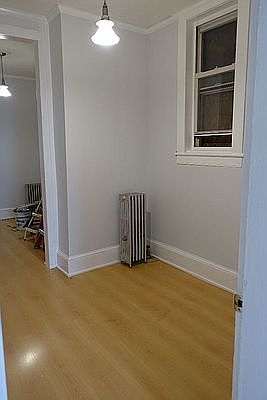 Move-in cost 2 X Rent (security deposit + 1st month's rent) Charming Railroad Apartment on a 3rd floor in a stylish brick building. Apartment features big eat-in kitchen, 2 middle rooms and large sunny room with windows. Comes with use of outdoors, heat and hot water is included in rent. Cat OK per Owner's approval. Very nice building and Owners.