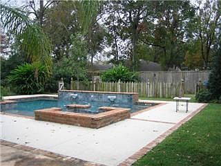 Magnificent Colonial Style home in Greenbriar Estates. Complementing the front of the home has a circular driveway for additional parking and a large front porch. When you enter the double french doors you will find beautiful brick flooring and a spacious foyer giving you a grand feel when you walk into the home with it's 10' ceilings. To your right is the formal dining room with large floor to ceiling windows, a stunning chandelier, and opens to the huge living area with a masonry fireplace, built ins, wet bar and 3 large windows giving you a full view of the tropical landscaped pool area. Kitchen area has lots of cabinets and stainless appliance. The large center island is great for casual dining and is topped with a butcher block counter top. Off kitchen is the breakfast area with large windows over looking pool area a door allowing you to access back yard, and a bathroom accessible to inside of home for guest and a door accessing the pool area. There is also a large den/office off the kitchen area, can also possibly be closed in for extra bedroom. Down the hall way are the 3 bedrooms with large closets and lots of extra storage. Master suite also over looks pool area with a door accessing the outside. Completing this home is the tropical landscaped back patio over looking the pool and water features with a separate fenced in dog run. The VIEWS are what makes this house a gem by itself. PERFECT HOME FOR ENTERTAINING! Schedule your showing today it's a MUST SEE! The large center island is great for casual dining and is topped with a butcher block counter top. Off kitchen is the breakfast area with large windows over looking pool area a door allowing you to access back yard, and a bathroom accessible to inside of home for guest and a door accessing the pool area. There is also a large den/office off the kitchen area, can also possibly be closed in for extra bedroom. Down the hall way are the 3 bedrooms with large closets and lots of extra storage. Master suite also over looks pool area with a door accessing the outside. Completing this home is the tropical landscaped back patio over looking the pool and water features with a separate fenced in dog run. The VIEWS are what makes this house a gem by itself. PERFECT HOME FOR ENTERTAINING! Schedule your showing today it's a MUST SEE!