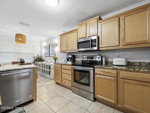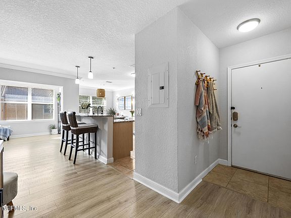 Move in Ready beach condo! This beautifully designed 2-bedroom, 2-bathroom condo offers 1,170 square feet of bright, open living space, just one block from the pristine sands of Jacksonville Beach. ALL FURNISHINGS NEGOTIABLE! The spacious living area and bedrooms feature luxury vinyl plank flooring with tile in kitchen and bathrooms. The gourmet kitchen is both functional and stylish, with granite countertops and stainless steel appliances, perfect for preparing meals after a day at the beach. The master suite offers a private retreat with an en-suite bathroom, while the additional bedroom and full bathroom comfortably accommodate family or guests. Situated on the third floor, this unit provides peace and quiet with no neighbors above. Enjoy the resort-style amenities, including a refreshing pool, summer kitchen, clubhouse, fitness center and ample parking for guests. This condo's prime location places you within walking distance to the beach, local shops, and restaurants.