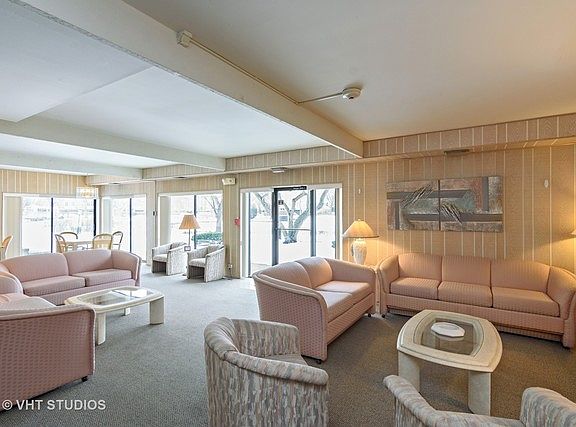 Why rent when you can own your own home. Pretty and spacious 1 bedroom with great views and far from traffic, very peaceful and unit is very light bright and airy. Generous room sizes, eat in kitchen with loads of cabinets, spacious living room and dining room, lots of closet space, in unit laundry room or coin laundry in the building. Heated garage space, storage space as well and a great building to live in. Club house with indoor pool, exercise facilities and many social activities . Great location close to public transportation, shopping, parks and a pretty grounds with a large lake in the middle of the complex.