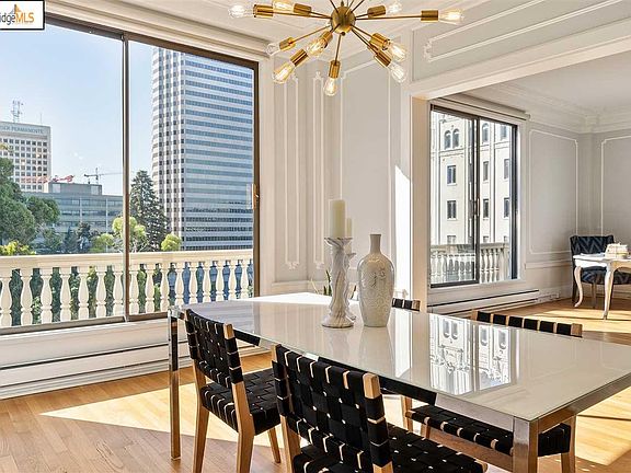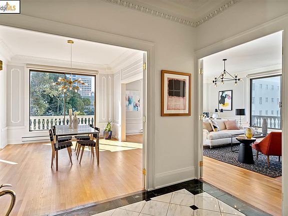 Highly coveted Top Floor corner unit in one of the most iconic Beaux Arts buildings in the East Bay. 200 Lakeside Drive is nestled on the beautiful shores of Lake Merritt and in the heart of the historic Gold Coast of Oakland. Prior to its completion in 1924, the site of the Regillus was that of the famed Schilling Mansion, with its original estate gardens and carriage house incorporated into the grounds of this prominent mid-rise work of art. Upon entry into this spacious residence you are immediately greeted by a gracious marble foyer and breathtaking views stretching from the city skyline, to the calming water views of the lake and into the East Bay hills. You'll find 10ft+ ceilings throughout, coupled with over-sized windows in every room. The highly functional layout provides abundant storage options with two coat closets and a large walk-in pantry. Also included is a private storage space underneath the building, bicycle storage, secure one car parking, and full time concierge.
