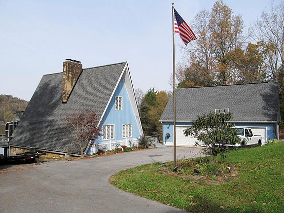 Residential, A-Frame - Harriman, TN Watts Bar Lakefront Alpine ''A Frame''with 410 ft. of shoreline & dock,4 lots totaling 1.6 acres, detached 3 car gar w/ drive thru for boat,400 am service for workshop - bonus room over garage-built 2010-new carpet Sunroom -exterior painted 2014-extensive decking-patio-hot tub--3 FP's-2 heat pumps-lower level w/wet-bar with refrigerator & Florida Rm. & bonus space for exercise rm., new Kitchen counters,new doors to heated Sunroom & front door- central to Oak Ridge & Harriman-come enjoy the lake! Video in photo section or copy and paste https://www.youtube.com/watch?v=r4gbeUen6Ak