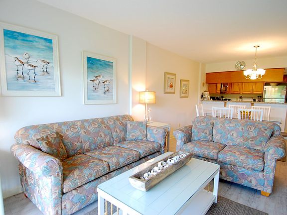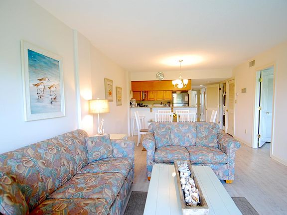 Location, location, location. This high-quality 3BR, 2bath condo has it all: very close to the ocean, plenty of sunlight in the condo and the ultimate in privacy. Located in the Land's End Ocean Resort, the condo is part of the Beachwalk Villas HPR and has been a rental with Atlantic Resort Group for several decades. The unit is located on the second floor of the 5 story building, at the end closest to the adjacent wildlife preserve. As an end unit there are three sides of the unit with windows and doors to the outside. No one can walk past the condo, the front door is the only entrance. The unit has two decks. One deck is a wrap around servicing the living room and master bedroom looking towards the ocean. The second deck is at the other end, facing west for outstanding sunset views, servicing the second and thrid bedrooms. Unlike most 3BR condos, each bedroom has a window and sliding glass door to the decks. The unit has been maintained to a high quality standard over many years. All woodwork and internal doors have been converted to white. Luxury vinyl planks provide flooring throughout the spacious interior. There is plenty of room for the family to spread out and enjoy. The kitchen has been improved to provide stainless steel appliances and granite countertops. The current bed configuration is a King, Queen, 2 Twins and a Queen-sized pull out sofa. Access to the ocean is available down a path less than 100 yards. The pool is at the base of the building along with a hot tub that operates seasonally. Parking is available under the building or in the private parking lot. The unit is currently a vacation rental with Atlantic Resort Group. The unit is being sold furnished.
