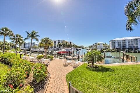 Upgrades include high-end Cambria quartz countertops and newer appliances in the kitchen, eye-catching oak-style tile plank floor throughout, and newer hurricane-proof windows framed by plantation shutters. Additional features include a spacious screened lanai with electric hurricane shutters, lanai screens and lanai enclosure that are all brand new overlooking the water! This beautiful condo also has a Brand New A/C and Air handler (2023) and water heater (2015), and an extended pop out dining area. Amenities include a spacious pool and 2 grill/sitting areas to cook right along the water. This condo also allows WEEKLY RENTALS and has done very well over the years! Your island lifestyle awaits. Boat dock #34 also available for purchase separately and sits directly out in front of your lanai so you have the perfect view of your boat.