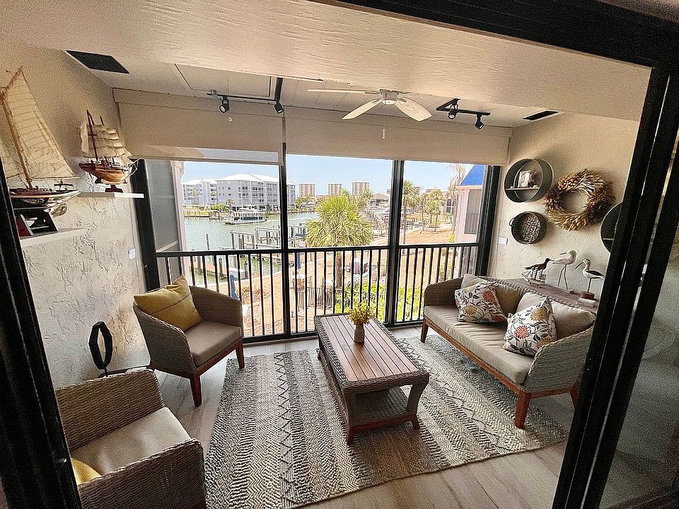 Affordable Waterfront Canal Living in Fort Myers Beach - this convenient location offers many opportunities for short walks to stores, shops, restaurants, TIKI bars, entertainment, farmer's market, beach access, movie theater, and health care on South End of Fort Myers Beach. If you live at this complex you can also purchase or lease boat docks and there is a marina right on the canal. Condo is now available for you to live in or use as a rental opportunity. Weekly rentals are permitted in this complex with BBQ area and community pool and this unit is located in the building right next to the pool. 2nd floor unit offers great waterfront view from the glassed in lanai and the bathroom has two sides separated by a door. This condo also has a bonus. There are pull down stairs for extra storage in the attic. Accepting back-up offers