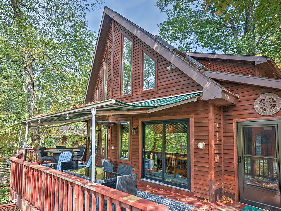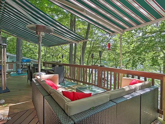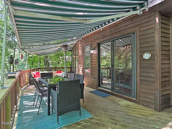 STR Investment Opportunity! Lake Wallenpaupack Lakefront 3 Bedroom, 2 bath Chalet in Hemlock Point with beautiful views of the lake & amazing sunsets! The outdoors are meant for entertaining - three tier deck w/awnings, gas grill, outdoor dining table, Adirondack chairs, outdoor living room, heater, & amazing lake views; the middle-level deck features hammocks & a sitting area; the lower-level deck has an outdoor living room set & gas fire pit; head to the private dock and enjoy the boating, fishing, swimming and more! There is a swim ladder, as you can swim off the dock where the water is quite deep. The inside features an open floor plan w/vaulted ceiling, hardwood floors, a wood burning fireplace & a wall of windows overlooking the lake, dining area, large kitchen, living room & sunroom. The primary bedroom is located on the main level w/a full bath. Head to the upper-level w/ T&G ceilings, a loft, two bedrooms & a full bath. Entertain in the lower-level in the newly renovated family room & Rec room. There is also an additional sleeping space. Walk out to the deck & enjoy relaxing in the hammock or head to the lake. Turnkey w/ new furniture & furnishings included. Plenty of parking for guests in the flat, paved driveway. Current short-term rental - 2025has been VERY booked with rentals.