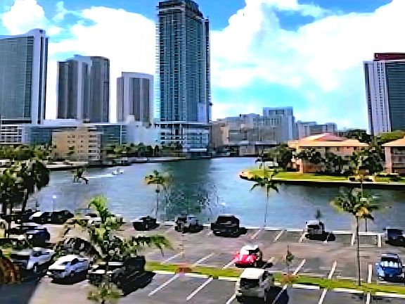 Rarely available ''12'' line fully Renovated waterfront unit! This Bright and airy unit features beautiful updates with tile flooring, granite counter-tops and custom wood cabinets, A modern bathroom with a frameless enclosed shower door, custom wall tile, and a newer vanity and light fixture. Sweeping picturesque views looking south of the intersecting canals, intracoastal and a partial city view! 200 Leslie building is a 24 hour secured building newly refinished with a modern lobby entry, a heated pool, hot tub, state of the art fitness center, tennis, party room PLUS an assigned parking space & valet access. Excellent location east of US1 located in the well desired exclusive section of Three Islands in the heart of Hallandale. A truly one of a kind of waterfront experience awaits you!