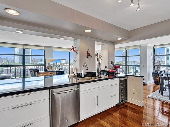 Stunning views from this beautiful corner unit with floor to ceiling windows. Direct views on the intracoastal, the bay and the city. Spacious and open floor plan with 2 bedrooms and 2 bathrooms. Wood floor throughout, quartz countertop, recess lights and new cabinets. Everything was remodeled. Washer and dryer inside the unit. This is the best place to entertained your guests or to just relax and look at the boats from inside or from your wrap around porch. All that in a pet friendly building with security 24h, valet, bike room, fitness center, heated pool, spa, sauna, billard, ping pong, tennis and more. Close to the beach, the mall and the casino. Beautiful!