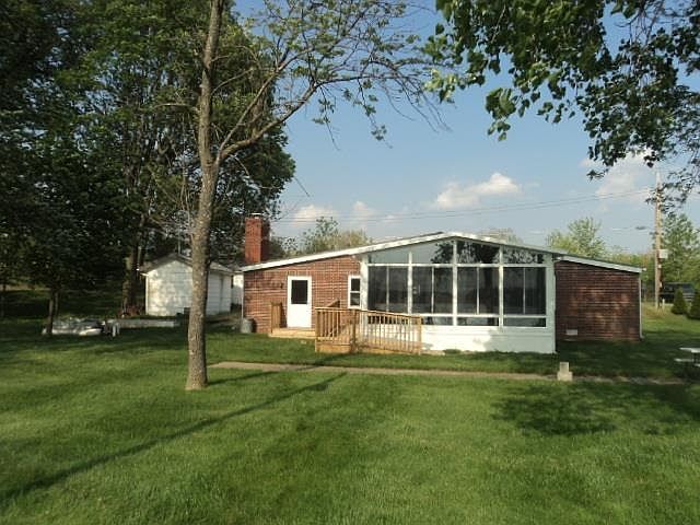 All brick exterior home that sits on 2 large lots - 90 feet of lake frontage that has wonderful view of Lake of the Woods which is a limited hours all sports lake. Metal roof was installed recently as was the 4 seasons room which is all glass and unobstructed views! The metal dock & pontoon are part of the package.
