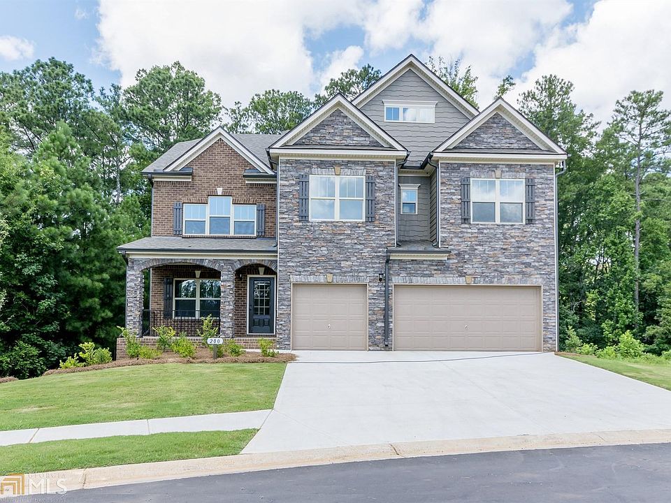 Brand NEW energy-efficient home ready NOW! Spacious Woodland with full basement, huge media room + 3-car garage! Oversized island kitchen with SS wall double ovens & plenty of cabinet space open to family room with fireplace. Living room w coffered ceiling, elegant Master with trey ceiling & fireplace, luxurious bath w dual vanities & oversized walk-in closet! Community is located just across the street from Holly Springs Elementary & only minutes from great shopping at the Outlet Shoppes at Atlanta. Known for their energy efficient features, our homes help you live a healthier & quieter lifestyle while saving thousands of dollars on utility bills.