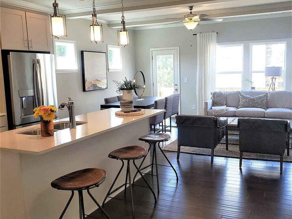 Floorplan called 'Deerwood.' Three Stories. Cozy home with hardwoods on main floor and stairs. Beautiful granite countertops with island and pendent lighting above. Breakfast area overlooking the fireside family room with coffered ceilings. Separate dining room with butler pantry leading into the kitchen. Inviting master spa with tile floors, relaxing Garden Tub, separate shower, vanity/dual sinks, and walk-in closet. Media room/optional office/bedroom on terrace level. Community offers clubhouse with swim and tennis. LOW HOA fee, covers water/sewer/trash.
