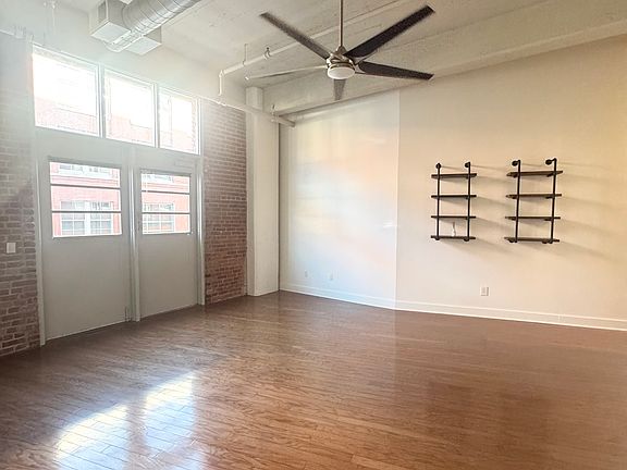 Walkout terraceAmple closet storageExpansive lounge areasExposed brick wallsIn-unit washer-dryerHigh ceilingsSliding barn-door