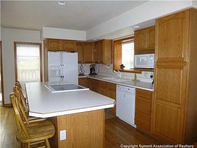 LIKE NEW! GREAT ROOM with big rock gas fireplace, soaring vaulted ceiling w architectural interest. Lots of windows. South deck off great room w manicured yard. Giant master suite. Lower level family room w 2nd kitchen, bath and fireplace could be lock-off . Low maintenance stucco and metal roof + oversized garage.