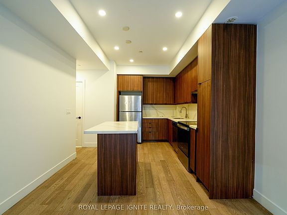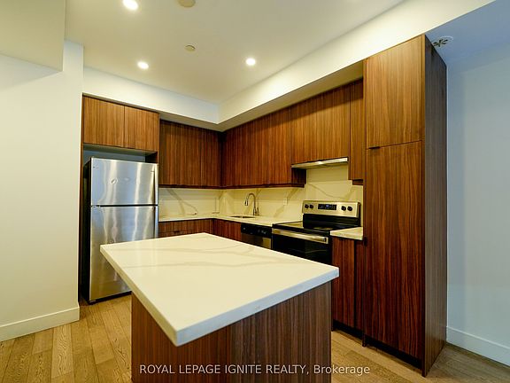 Stunning upgraded builder's model in a brand-new community! This modern back-to-back townhouse offers direct access to a serene ravine with scenic walking trails. Features include 9' ceilings on the main and second levels, underground parking with private home entry, elegant quartz countertops, and sleek laminate flooring throughout. The condo fee conveniently covers landscaping, snow removal, visitor parking, garbage disposal, general property management, and water. Ideally located within walking distance to the main transit hub, future LRT, Sheridan College, Shoppers World, and