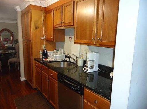 First floor 2 bedroom garden unit with hardwood flooring in kitchen and Dining area. Granite counters. Crown Moulding. Slider to Patio of Living room. Combination dining room living room. Spacious master bedroom.