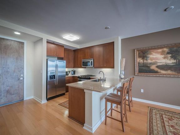Fabulous Downtown condominium conveniently located ALL amenities. A very popular plan in the development(the Cambria), this unit has over 1,200 sq. ft. including a spacious living & dining area, 2 large bedrooms, 2 full baths, a good sized kitchen & an additional office. Features include all stainless appliances, beautiful hardwood floors, Quartz counter tops, 9 foot ceilings &generous sized closets.