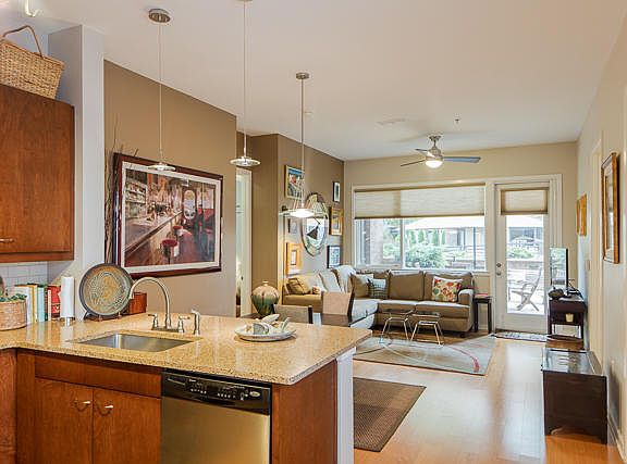 Condo Living at it's best PLUS a SPACIOUS POOL SIDE PATIO! Step inside to an open floor plan with UPGRADED stainless appliances, hardwood floors, neutral paint colors and an open floor plan that is perfect for family living or entertaining. The Master suite has been upgraded to include a large walk-in shower with frame-less glass door, heated floors and 2 closet with custom organizers in each! The floor plan is versatile with a second guest bedroom and full bath, plus a bonus office/3rd bedroom! If you are not already sold, then the private patio will win you over! Large enough to accommodate numerous guests and space for grilling out, yet only steps to the resort style pool. This unit also conveys with 2 side by side parking spaces.