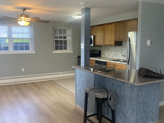 Welcome to this Maple Gardens Condominium in the North end of Pottstown where you will find this well maintained all brick 2 bedroom condo, Everything is on the 1st floor. The interior was completely newly painted & has newly installed laminated flooring. The kitchen cabinets & stainless steel appliances which include the range/oven, refrigerator, dishwasher & built in microwave are only 5 years old. There is also a garbage disposal. The kitchen & dining area also has a breakfast bar. There is also a living room & a stackable washer & dryer hookup. Replacement windows. The exterior building maintenance, lawn care, snow removal, trash, water & sewer are included.Gas heater, the tenant is responsible to pay the gas bill, no air conditioner, you can put your own air conditioner units.