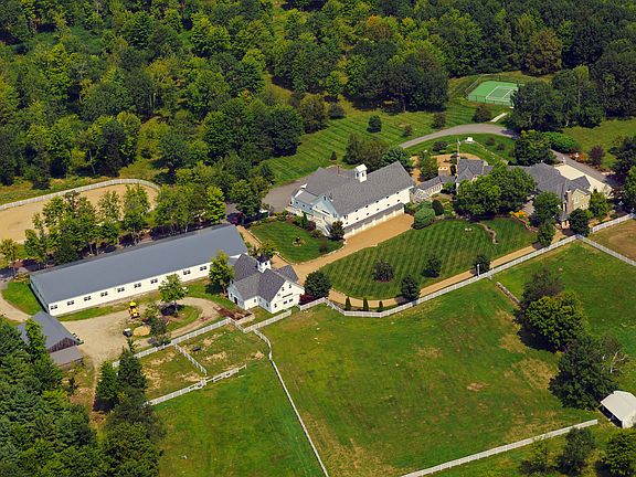 This Estate property is sited on over 116 acres, and in a word is breathtaking. Main house offers 5 BR, 5 baths and is so thoughtfully laid out to offer comfort and privacy, yet every modern convenience and more. Completely remodeled in 2005 this home offers a large chef's kitchen, 4 bay garage, a fully and professionally equipped English Pub, 13-seat home theater, to the most spectacular master suite! Through the outdoor kitchen you are led to an impressive 40 X 90 five story Post and Beam heated barn. There is a 6 bay garage perfect for the car enthusiast as well as a helicopter hanger if the commute from the city is too much. Recently built was an Olympic sized heated indoor riding ring as well as an 8 stall barn. Spectacular landscaping includes stone walls, perennial gardens, outdoor riding ring, level paddocks, tennis court, miles of trails and a sugar shack. Located only 90 miles from Logan, 45 miles from Manchester airport, minutes to I93, and close to ski areas and lakes.
