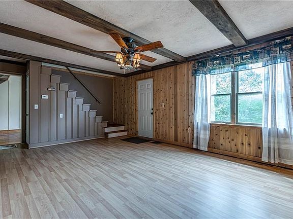 Welcome home to the rustic charm of 200 Margaret Ave, Beamed ceiling living room with cozy pine paneling and a decorative stone fireplace, Bright, spacious kitchen, Large first floor master with wide plank pine floors with a slider out to rear deck, 2 additional bedrooms on second floor with shared closet between them or plenty of space for a wardrobe, Relax on the covered rear deck and enjoy all of the greenery, Basement is partially finished for extra space, Close to the center of town and all that Evans City has to offer!