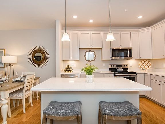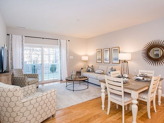 Martins Landing, A Vibrant Adult Community (55+) close to shopping, recreation & more! The home offers 1,020 square feet of living space all on one level. Enjoy a modern kitchen with quartz island, generous upgraded cabinetry and stainless steel appliances. The living room has a 8ft slider with scenic wooded view. The living square footage with open concept makes this plan ideal for entertaining or a retreat for relaxing! The owner's suite is spacious and is complete w/walk-in closet. In-unit laundry utility room w/full sized side by side washer & dryer. Plus you'll love the extra flex room to spread out or make it a den/office! Easy access to major highways for the occasional trip north or enjoy activities in Boston. Community includes club house, fitness center, multipurpose room, outside grilling stations, outside gathering area, walking trails and so much more!