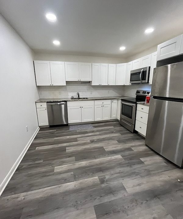 Very private setting on outskirts of Wilmington. Two bedroom apartment. Finished basement with outside entrance,fireplace and powder room. All new interior. New kitchen with new appliances. Central air and washer dryer hook up. Parking for two cars. Located on 1.25 acre lot with pond. Private entrance. Great patio. Tennant pays electric and trash