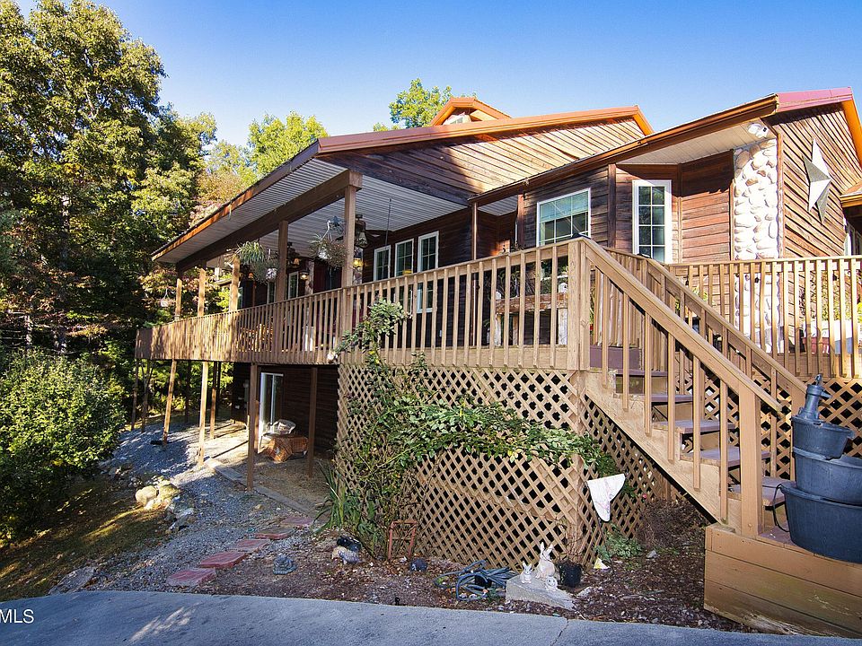 Enjoy your home nestled in the woods, with a stocked pond, and Barney Creek flowing in your backyard. This property is completely private, with a wraparound deck, a large, three car garage, 4 bedrooms with walk in closets, Jacuzzi tub and Bidet in master bath. The spacious inviting kitchen has a gas stove, and plenty of storage. The basement has a bar/recreation room, bedrooms, sauna with shower, partially finished gym/storage room (workout equipment conveys) as well as a partially finished workshop/craft room. Shelving behind the bar and above the couch in the rec room/bar area can convey. Cameras on the outside of the house can convey. Sellers have updated with a tank-less water heater, and HVAC was replaced in 2021. The 550' deep well repaired in 2021. There are 2 carports. Chicken coop and chickens can convey. This home has been used as a wedding venue by the sellers. Come explore the Coker Creek community to do some hiking and you can even do some gold mining in your own back yard! **Buyer must verify all information including square footage.**