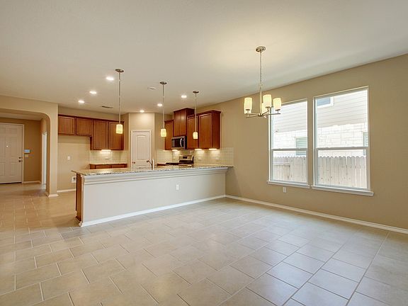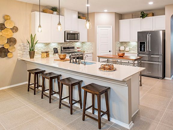This single-story home features a roomy kitchen that opens to a spacious great room. You'll also find 9-ft. ceilings throughout and a separate den. The kitchen offers Woodmont® Shaker-style maple cabinets in Ginger, beautiful granite countertops and complementing tile backsplash. The master suite includes a large walk-in closet, and the master bath boasts a garden tub with tile backsplash and a separate shower with tile surround. Finishing touches include a yard sprinkler system, tile flooring in the great room, kitchen, entry and baths, Sea Gull® lighting, ceiling fans in the great room and master bedroom, Sherwin-Williams® low VOC interior paint in Kilim Beige, 2-panel interior doors, an 8-ft. front entry door, and an exterior atrium door off the great room. Relax outside on the extended covered back patio.