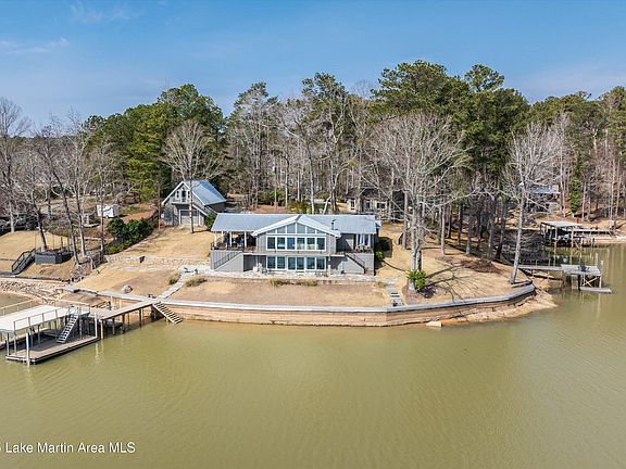 This Lake Martin home is the TOTAL PACKAGE! 5 bedroom/ 4 bath waterfront home offers both sunrise & sunset views, deep water plus a prime peninsula-end location. Floor-to-vaulted-ceiling windows span the lakeside of the home, showcasing the unobstructed 180° lake views. Complete with a chef's kitchen with ample amounts of custom cabinetry and big water views from every angle. A large covered deck, stone verandas and covered boat dock with an upper lounging deck bring the finest of lake living. Plenty of room with lake-level guest suite featuring a mini kitchen and full bath. Plus a Carriage House over the 2 car garage with a full bath and views for days. Designer finishes and no detail overlooked.Ready to have it all? 200 Mayors Lane is a rare find and is move in ready! Furnishings : included in the sale are all furniture, fixtures, drapes, blinds, decor, electronics, and lake toys. Not included are : personal pictures, clothes, and a few personal pieces of furniture to be named later.
