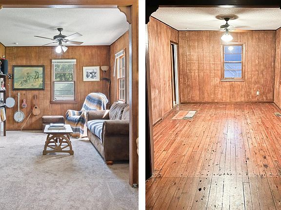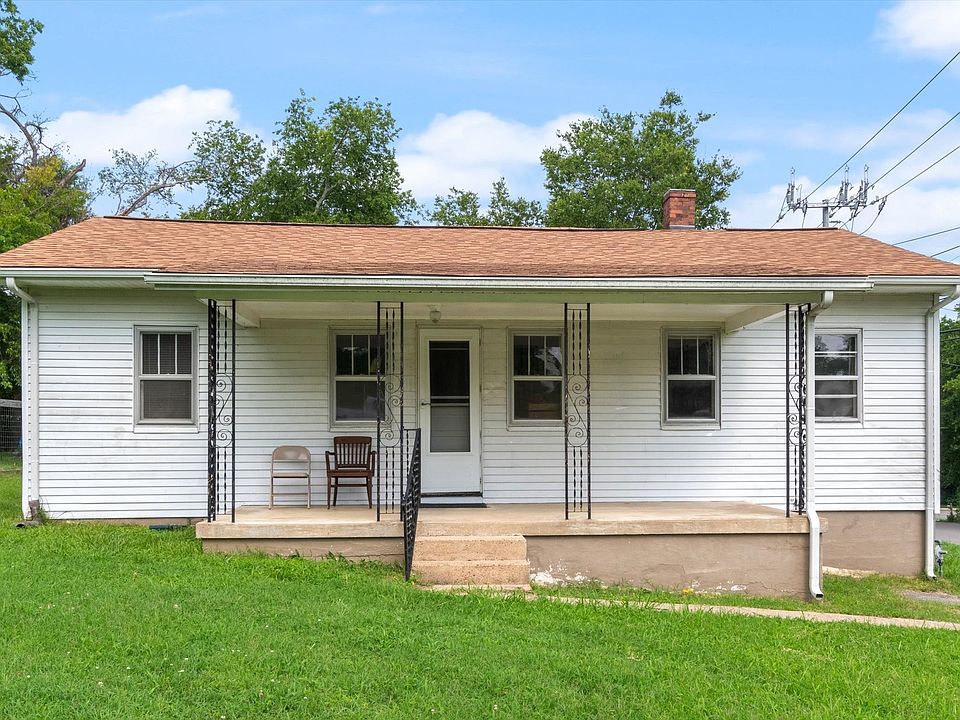 This solid and charming 2-bedroom, 1-bathroom cottage is located on a sunny and spacious corner lot. Bring your rocking chairs for the front porch! Hardwood floors under the newer carpet, a large eat-in kitchen, and retro wood paneling in the living room add to its charm and character. The separate garage is a definite bonus; it could be converted to finished space or left to keep vehicles out of the weather. Come see this move-in ready cottage today! No sign in yard