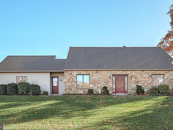 Picturesque stone front home in the sought after Dallastown School District situated on a lovely 1.25 acre lot on a private cul-de-sac, offering  tranquility yet super convenient to both I-83 and downtown York.  This four bedroom, two and a half bath home is open and filled with light from high quality Andersen doors, skylights, and panel doors that line the entire length of the home. The modern kitchen boasts granite countertops, high quality appliances, built in wine cooler, ceramic tile, and recessed lighting. The adjacent dining area offers stunning views of the backyard and plenty of formal dining space.  Walking through to the open living area you will find the comfort of a wood stove , cathedral ceilings and views of the upper level catwalk.   Wide stairs lead you to two upper rooms, a full bathroom, a large primary bedroom, and bedroom/office with a bonus reading nook that overlooks the spectacular view to the outside. Make an offer today before its to late.