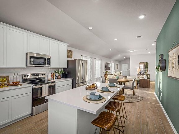 200 McLintock Road, our Model for the Cool Water community, is a beautiful 3 bedroom 2 bathroom single story home. Featuring most of our available options, this home has everything one might look for in a 1500 square foot starter home. Wood look tile is found throughout most of the home, with carpet in only the secondary bedrooms. In the kitchen you'll find white maple cabinets, quartz counter-tops and stainless steel appliances. The Primary bedroom features a bay window which gives ample natural light. The primary bathroom features an enclosed water closet, shower, and soaking tub. This home has beautiful landscaping, an ample back yard, full sod and irrigation both front and back, as well as a large covered patio. The home sits on a wonderful lot in a growing community just 2 blocks from the beautiful amenity center.