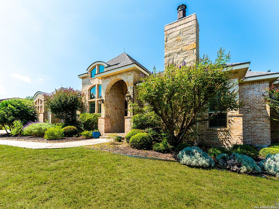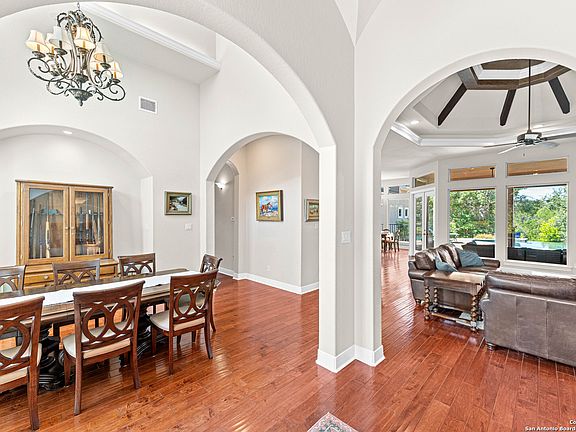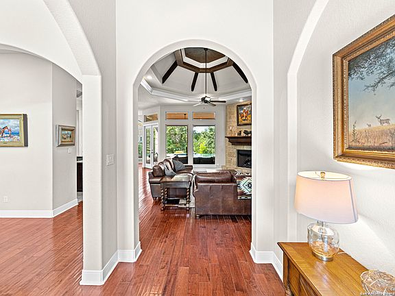 Discover this beautiful four bedroom home, complete with an office that can effortlessly serve as a fifth bedroom. Each room, including the office, boasts its own bathroom and walk-in closet. The stunning design features a first-floor media room for your entertainment needs. The 1.453 acre yard is terraced and low-maintenance, with breathtaking views of the Boerne skyline. Outside, enjoy the infinity edge pool and built-in grill, perfect for gatherings. Located just minutes from the soon-to-be-built Baptist Health System hospital, this home offers both luxury and convenience.