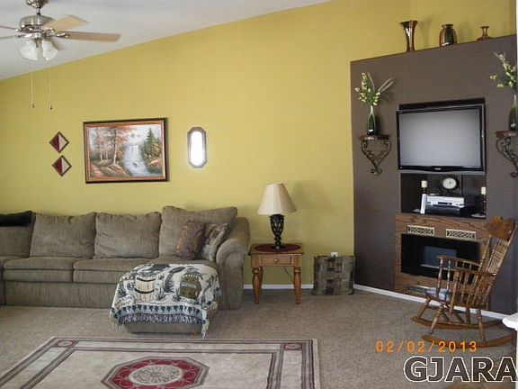 Mint condition and pride of ownership in a beautiful Fruita rancher. Lofty 11'3 cathedral ceilings throughout. Living room and master bedroom are both big enough to accommodate large furnishings. Spacious 5-piece master bath has jetted tub, custom dual vanity & over sized walk-in shower. Open concept living area shows off a beautiful upgraded kitchen. Hickory cabinets w/ granite-tile counter tops & glass-tile back splash. Custom kitchen sink is solid-surface simulated stone. Extra big kitchen island work station. Solar panels for energy savings. Other features include: gated RV parking, refrigerated air, stem-wall construction, large corner lot, 8'X8' backyard storage shed, 6-zone programmable sprinkler system & vinyl fencing. Information provided is deemed accurate but Buyer should verify.