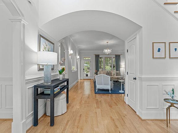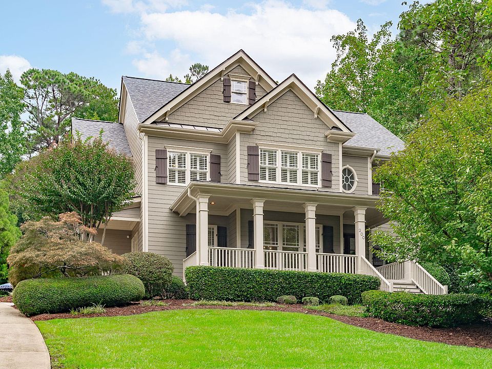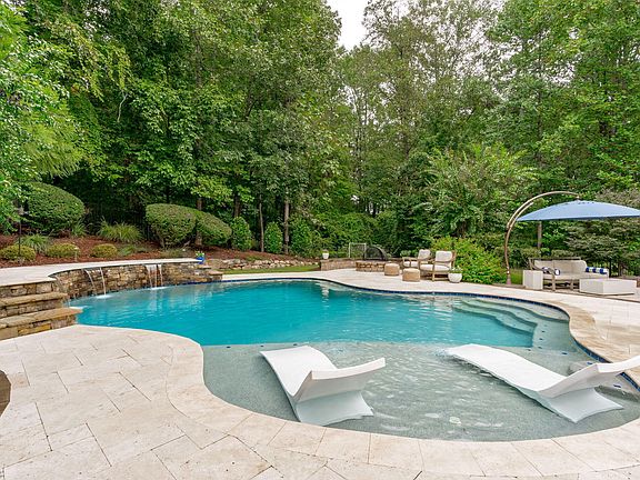 Experience luxury living in this stunning custom-built home in the sought-after Jamison Park community, just steps from Middle Creek School, park, and library! Meticulously maintained, this residence boasts an open-concept design with striking finishes, including a gourmet kitchen outfitted with a Viking gas cooktop and stove and newer KitchenAid appliances, quartz countertops, and an eye-catching herringbone subway tile backsplash. The kitchen flows seamlessly into the spacious family room, highlighted by a stone fireplace and custom built-in bookshelves. Prepare to be amazed by the sunlit dining room, adorned with coffered ceilings and elegant arched entryways. Gleaming hardwood floors span the main level, highlighted by designer lighting that adds a touch of sophistication. The second floor hosts a spacious primary suite, three additional bedrooms, and three full bathrooms. The fourth bedroom could easily serve as a bonus room. The expansive third floor offers a bonus/media room with its own full bathroom and a large unfinished storage area, ready to be tailored to your needs. Step outside to a meticulously maintained backyard that's sure to impress! Unwind on the screened-in porch overlooking a breathtaking saltwater pool with a tranquil waterfall feature, surrounded by lush landscaping for enhanced privacy. Enjoy peaceful, wooded views surrounding the property. Additional highlights include a three-car garage, newer roof, landscape lighting, and updated carpeting. This home is loaded with upgrades—see the attached features and upgrades sheet for the full list. Truly, photos don't do it justice—this is a must-see!
