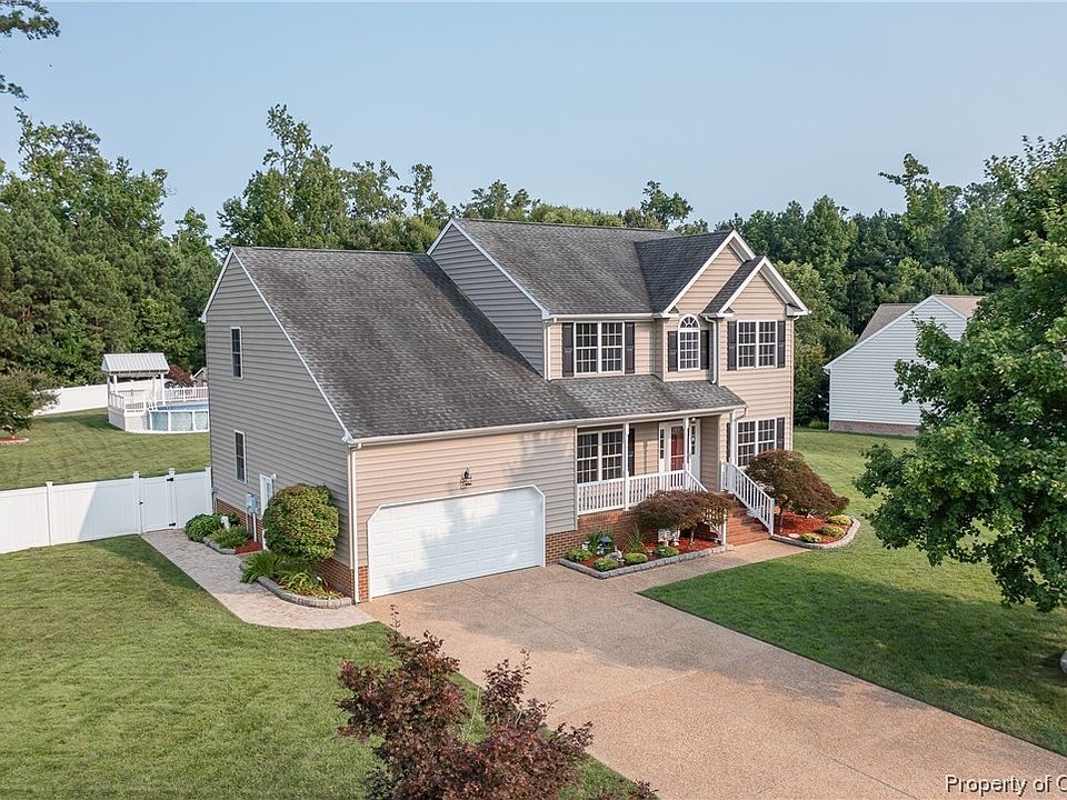 Like new home in the heart of York County. Gorgeous "shaker" style custom cabinets, granite countertops and stainless steel appliances. Gleaming oak hardwood floors entire downstairs, steps and upstairs hall except for your carpeted downstairs bedroom with full bath right outside the door. This home is immaculate and the outdoor entertainment area and pool is truly an oasis. Check out the cobblestone patio and path leading to your glimmering pool surrounded by a huge Trex/PVC deck and shelter with metal roof and pull-down curtains to cool off after your swim. Ample back yard is surrounded by sturdy and durable PVC privacy fence and there is an attractive custom shed in excellent condition. Storage? Hidden behind a closet is a door to a large walk in floored attic, no need for a ladder. Hurry to this home as it will not last long!