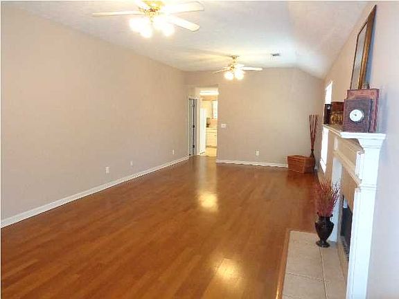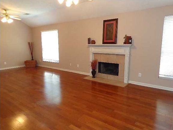 This home features BRAND NEW CARPET and FRESH PAINT all around! Step through the front door of this home in Mill Ridge to find a living room, which features a fire place, wood floors, a volume ceiling, and is open to the dining room. The kitchen features updated appliances, updated flooring and comes with a fridge. The spacious main bedroom and bath are tucked away on the back of the home for maximum privacy, the main bath features a double sink vanity, a garden tub, a separate shower, and the large walk in closet. There is fresh paint all around this beautiful home. There are two more bedrooms and a bath located on the front of the home. The backyard is surrounded by a privacy fence and contains the open patio which is perfect for outdoor cookouts, and a covered patio for the days a little shade is needed. This home also features, a covered front porch, glass storm doors on the front and back doors, and is located within walking distance to restaurants and shopping.