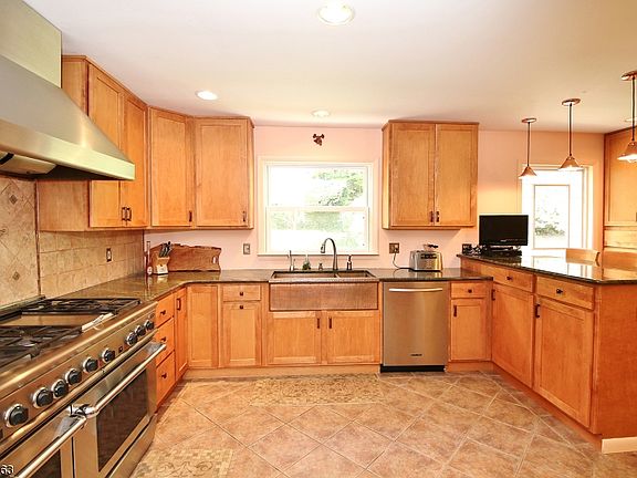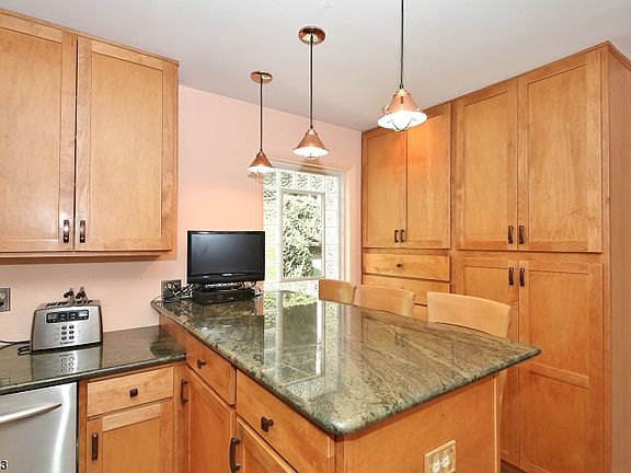 Open and Bright w/Golf Course and Pond Views out the Large Living Room Bay Window! Large gourmet chef's kitchen w/custom cabinets, granite counters, 3-Stool Breakfast Bar. Stainless appliances, Commercial grade DCS range with six-burners, commercial-grade direct-vent hood and double oven, extra-large copper farmhouse sink, Pot Filler, and Advantium Oven. Built-in Shelves in Living Room and Dining Room and Pocket Door Separating Dining Room and Kitchen. Hardwood Floors on Main Level. Whole house Walter Filtration System and Central Vacuum. Maytag "Neptune" Washer/Dryer. Solar panels resulting in $0 electric bill last year with a refund check as well. Foyer w/Slate Floor. Extra Deep Garage.Extremely close to Downtown Morristown, Major Highways, Direct Train to NYC. Backs to Spring Brook Country Club.