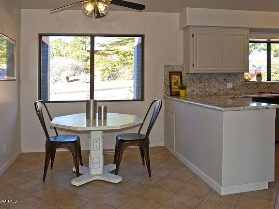 West Sedona Mid-Century Ranch style home with sweeping RED ROCK views. Sparwling kitchen with lots of cupboards, beautfiul granite counter tops, a nook walk in pantry and an attached laundry room. This warm home has a sunken great room with a wood burning fireplace outlined and charmed with Amythest!The dining room is within this great room and has a built in Hutch.Great gathering room with Red Rock views and a redwood deck off the back where the RED ROCK views sit.The grand master bedroom has a vaulted ceiilng, remodeled bathroom in process and a walk-in closet. Most of the home has Reclaimed Chestnut laminate flooring along with new window covering through- out, a newer roof and HVAC system.