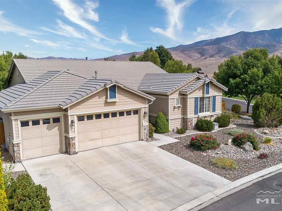 Beautiful single level,corner lot home in the gated area of Dayton Valley Golf Course.This home features 3 bedrooms, 2 bathrooms, an office and and a oversize 3 car garage.Kitchen has over sized island which opens to the living room dining room combination. Great floor plan with master bedroom separated from the guest bedrooms. Master bedroom has large walk in closet and sliding door that goes to the backyard. Not to mention the immaculate landscaping with colorful plants and a covered patio to enjoy..