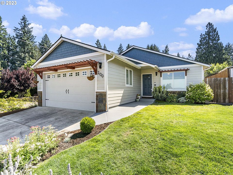 Lovely Single Level Home, close to Downtown Ridgefield ~ This tastefully upgraded bungalow located on a quiet, dead end street, will delight you with its open floor plan, vaulted ceiling and stylish updates. The living space is highlighted by the newly renovated kitchen with its new custom cabinets, quartz counters, farmhouse sink, full tile backsplash, pendant lighting and stainless steel appliances. The kitchen opens to the spacious living / dining area with its airy vaulted ceiling and custom wood slat accent wall. Generously sized primary ensuite bedroom with walk-in closet, 2 additional bedrooms, 2nd bath and recently renovated laundry / mud room round out the space. Relax outside in the private yard with a covered patio with new ceiling fan and large utility shed. Upgrades include new roof, new LVP flooring, new water heater, new interior and exterior paint, custom top down - bottom up blinds throughout, and new thermostat. Gravel parking pad along the road was previously used for boat / RV parking. Home is close to Downtown Ridgefield with it's shopping, dining and recreation options, and a 5 minute walk to Abrams Park.