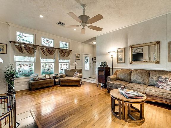 This home has something for everyone! Full size garage apartment complete w living room, bedroom, kitchen, & bathroom - 24 x 44 workshop w electric & roll up doors - 4 car garage - hot tub & more! Great curb appeal w lush green grass & mature shade trees. The inside lives up to your expectations with original hardwood floors & cozy fireplace. Kitchen has tons of built ins including spice rack, wine rack & wine glass holder. All bedrooms are large & have ample space for your family. As an added bonus, there is ship lap behind the drywall in all but 2 rooms. Nice amenities such as sink in utility, stowaway in wall ironing board, sprinkler system & more. Home comes complete with washer & dryer! Come look today!